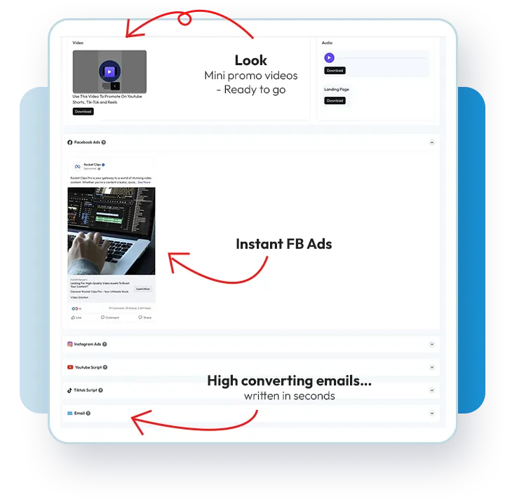 Generate all the content you need in just one click: Facebook, Instagram, Google, Lined in, TikTok
