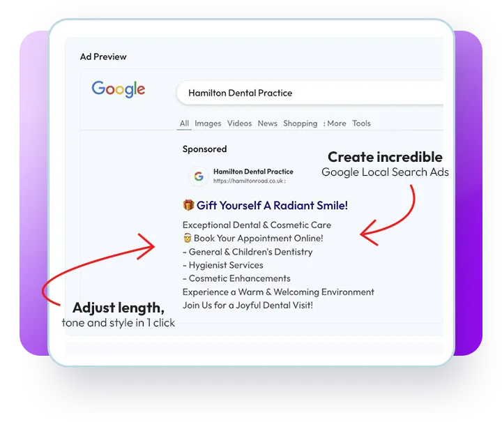 Deliver High-Impact Search & Display Ads – Generate outstanding Google Search and Banner ads your clients will love.